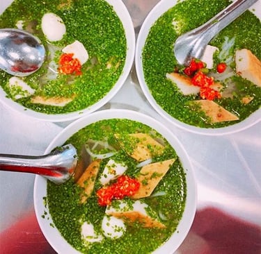 Mỗi tô bánh canh là một bức tranh giản dị nhưng đầy cuốn hút: nước dùng trong veo, sợi bánh mềm dai, thịt cá tươi ngọt, và đặc biệt là lớp hẹ xanh phủ ngập – thứ tạo nên bản sắc riêng mà không nơi nào có được.